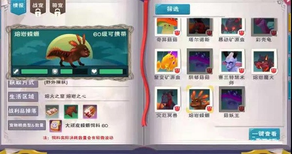 以上就是创造与魔法熔岩蝾螈饲料配方,大家可以做熔岩蝾螈的饲料给它喂食来更容易的去捕捉它,希望能对大家有帮助,想了解更多资讯攻略和教程赶快收藏多特手游,多特小编为您呈现精彩内容。