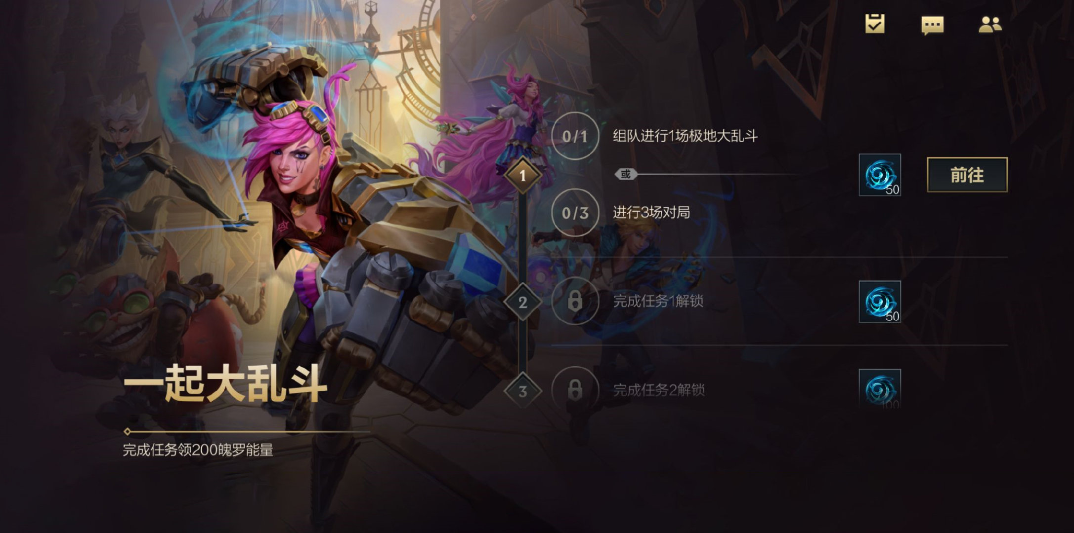 任务2:组队进行1场极地大乱斗或进行3场对局,可获得魄罗能量*50