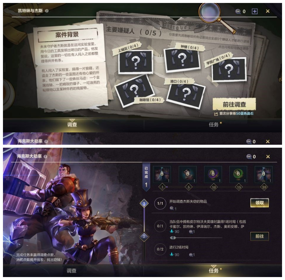 杰斯的实验室被盗啦!珍贵的怀表与设计图纸都被可恶的窃贼盗走了,快来协助凯特琳,查明真相吧!