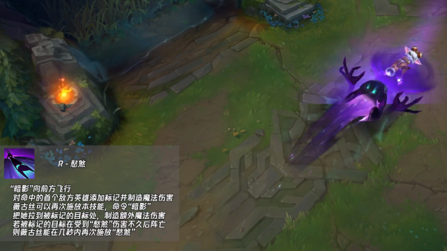 薇古丝可以再次施放本技能,命令“暗影”把她拉到被标记的目标处,制造额外魔法伤害。