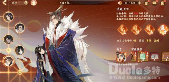 帅:团队中存在一个己方角色可以提高帅的25%防御力,15%攻击力。
