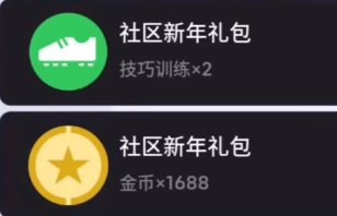 网上所谓的实况足球手游领1688金币指的就是这个“社区新年礼包”,除了这1688金币外还有两张技巧训练。