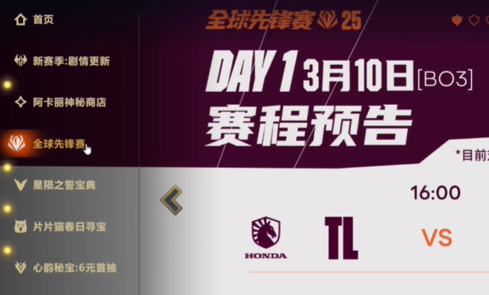 1、登录游戏:打开《英雄联盟》客户端,进入“全球先锋赛”活动页面。