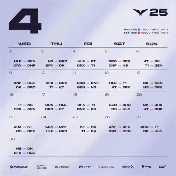 LCK 2025年第二赛段将在4月2日正式开赛,开赛时间确实要比lpl晚了好多天,不过他们赛区的队伍也少所以能理解。那么具体的赛程安排怎么排的呢,下面就让我们来看看英雄联盟LCK2025第二赛段赛程安排。