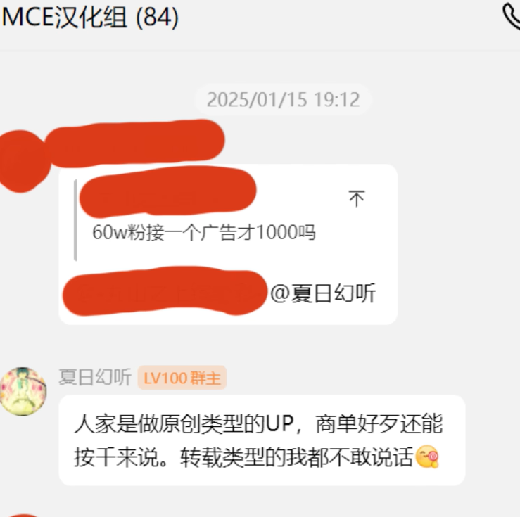 这也并不是他自己受到了什么区别对待,卡米亚又去找其他组员求证收入,得到的答案均是“没得到啥收入,真就为爱发电吗,顶多一个月收到个100的红包。”