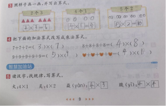 当然我们这种远离学校的其实都还好,真要说头大的还得是学生和家长,很多在数值结果上理所应当的等式在新教材的硬性要求下,都会被认定成是错误的,比如下面这种加法改乘法的算式题,家长就对7+7+7就只能写成7×3这一问题感到不满。