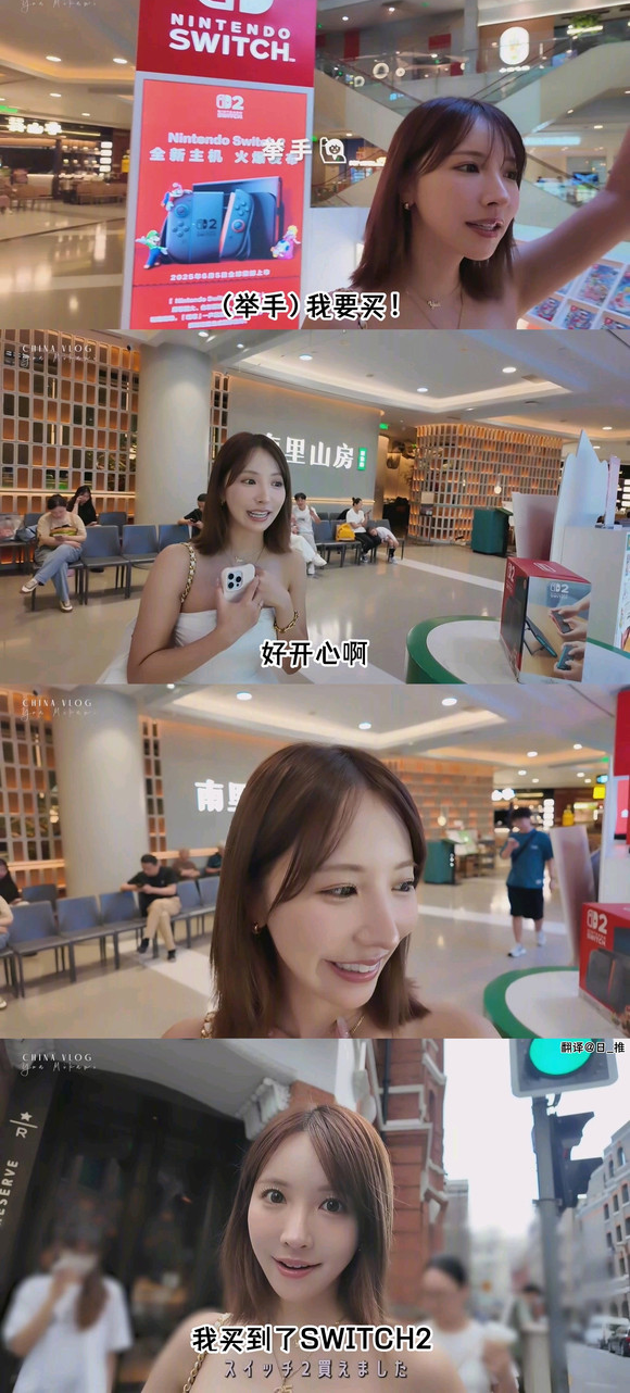 然后她们一行人就逛街,应该是在新天地附近的商场,三上悠亚看到了摆在商店门口售卖的NS2,然后大为震惊的表示:“我发现了NS2,好像可以直接买,诶,这不是假的吧?因为在日本这个是需要抽签才有资格买的。”