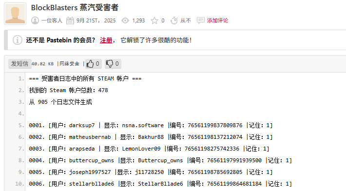 另一家从事网络安全的组织也在跟随进度关注此事,通过进一步的调查,受害者的steam账号总数又创新高,来到了478位。