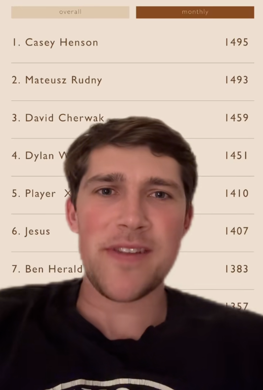而这个叫Juggle_guy的用户则是最早一批收获知名度的人,他的真名叫凯西汉森,他表示自己曾是这方面的世界冠军,并于9月5日上传了一段自己位于榜首的视频来加以佐证,这条视频很快便收获了两万多个点赞。