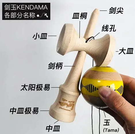 剑玉是一项起源于法国,发扬于日本的一项游戏,它的本体是由一个带皿和尖刺的剑柄、一个带孔的球体以及一根连接两者的线组成的,玩法就是甩动本体让其做各种不规则运动,只要能让上面的小球停在剑柄上的特定位置即可,简单来说它就像是悠悠球和空竹的融合改进版。