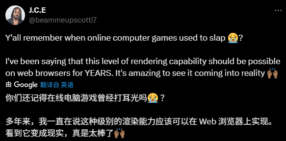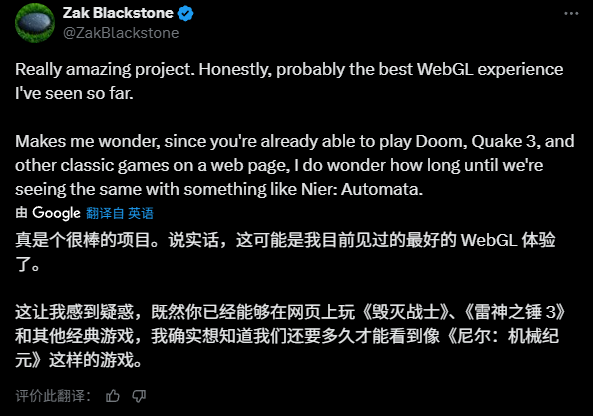 就像这位老哥说的一样,既然网页上已经可以玩《毁灭战士》《雷神之锤》这样的经典游戏了,还有多久才能玩到现代的3A大作呢,虽然短期我们是看不到了,但不管怎么说,技术上有突破总归是好的。