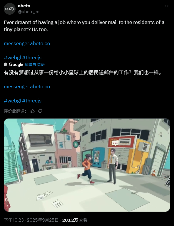 它是出自一家叫abeto的艺术互动工作室,下面这短短两句话和一个游戏链接就是官方对这个游戏的全部宣发了。(链接:messenger.abeto.co)