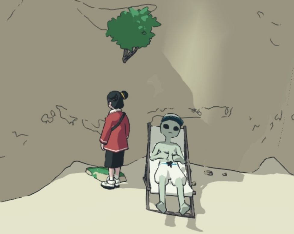短是短了点,但是在跑路送货的过程中,还是能发现不少惊喜的,比如在海边你就能看到一个正躺在沙滩上晒太阳的外星人。