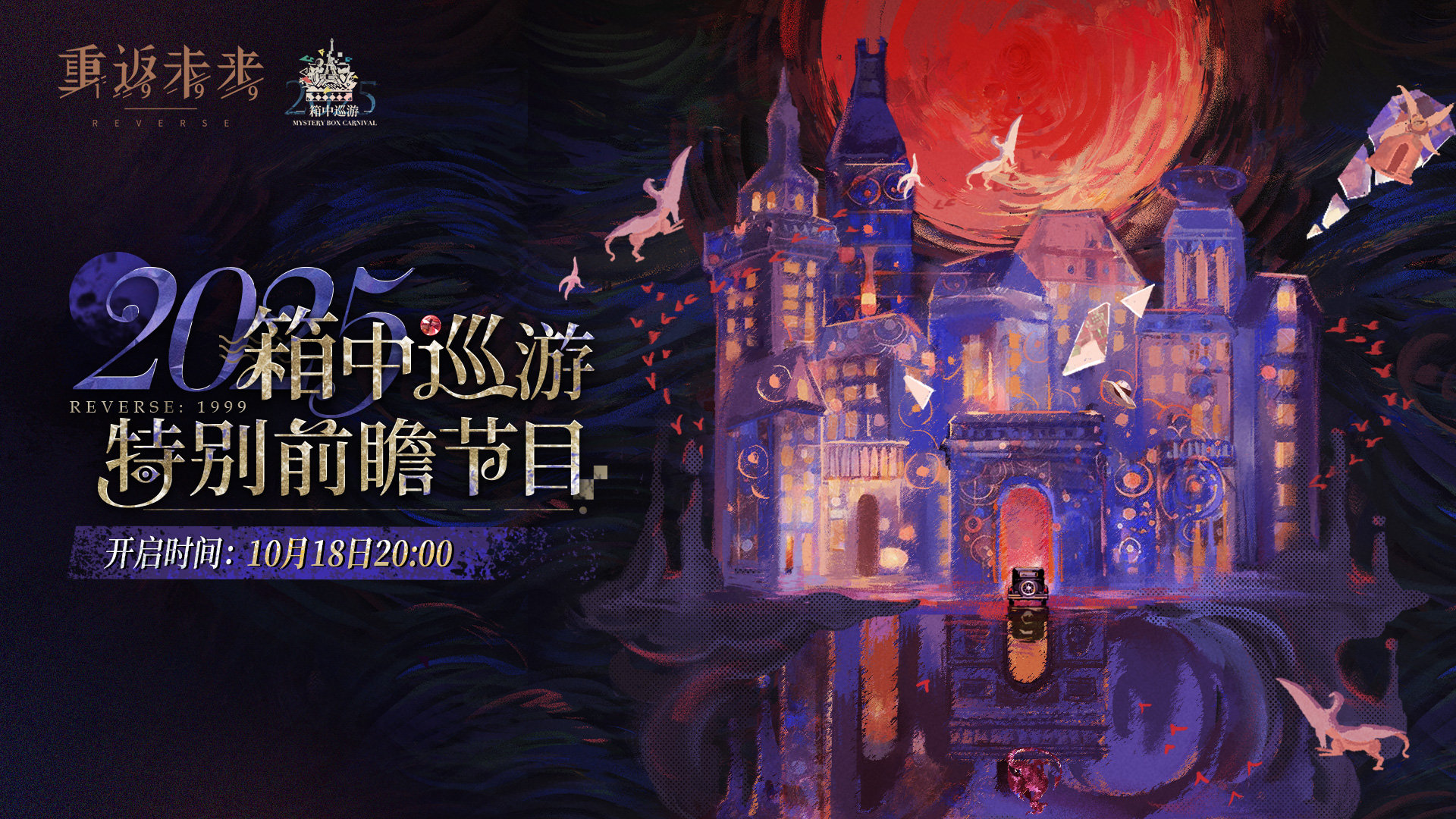 《重返未来:1999》将于10月18日20:00开启《相约1999》之2025箱中巡游 · 特别前瞻节目!点击进入下方直播间,即可预约直播!节目将于19:30开始倒计时。