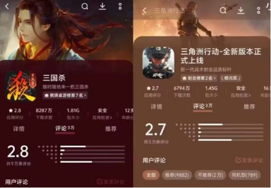 在种种因素下,三角洲的评分也是再创新高,一度超越了三国杀。