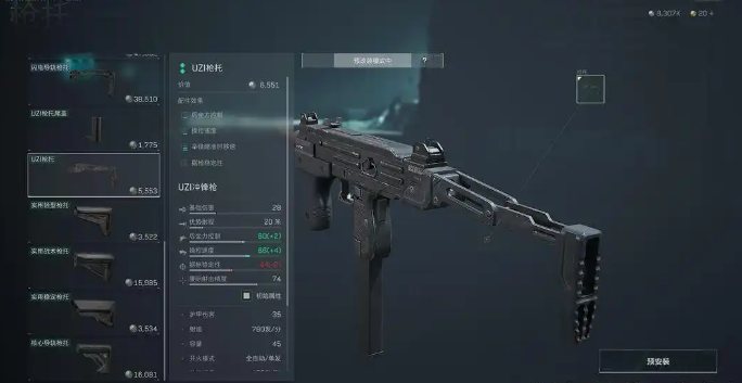 枪托部分大家可以选择性的增加UZI枪托,可以提高对后坐力的控制并且再次的增加了操控速度,如果追求极致性价比,可以选择不装枪托,但是毕竟价格才5000左右,还是推荐大家装备一下。