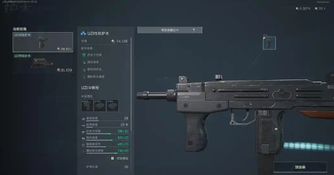 解决完续航问题,我们再来改一下护木,护木我们选择UZI性能护木,可以大大的降低后坐力操控速度,并且还可以增加据枪稳定性,而价格只需要2.8万左右,性价比非常高。