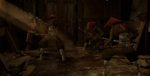事实也证明,延期的决定是正确的,2001年1月25日,《鬼武者》在PS2平台发售,机能的提升不仅能以更高清的画质让玩家欣赏到帅脸,而且战斗的全3D即时演算和电影式的过场CG也能极大的增强代入感。