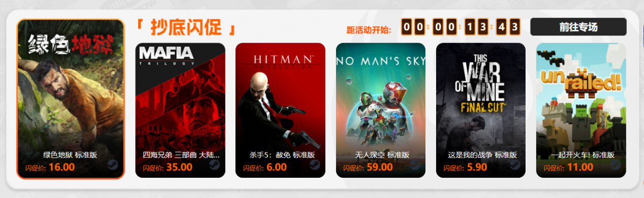 《这是我的战争》闪促价:5.9元,史低:7.6元;