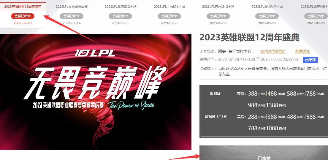 3、这时会显示售票结束(2023年7月28日到 8月2日)。