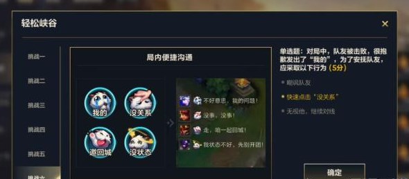 挑战六:对局中,队友被击败,很抱歉发出了“我的”,为了安抚队友,应来取以下行为(5分)