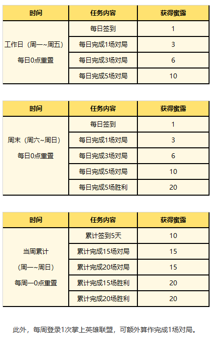 完成每日对局及胜场,即可积累相应的活动积分——“蜜露”。