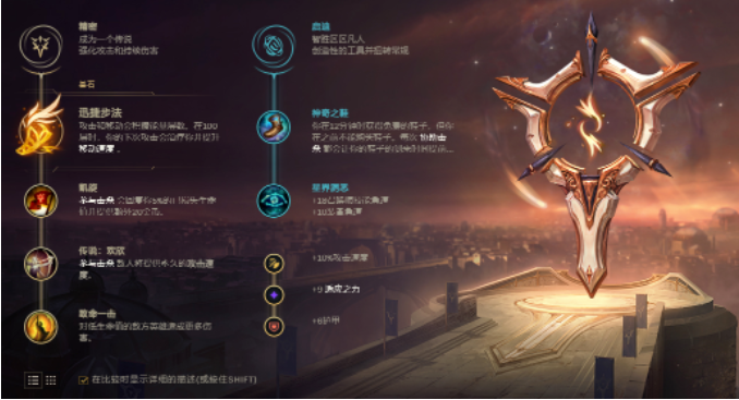 符文选择迅捷步法就行了,打野男枪也只能用这个了,副系带上鞋子和星界洞悉就OK,如果想打得凶一些,可以带猛然冲击+宝藏猎人。
