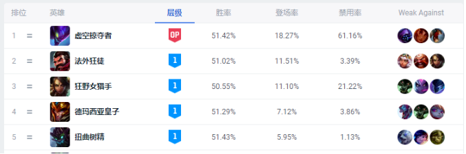 螳螂就是当前版本的野区之王,而男枪的强度也是不弱,排名紧随其后,同样拥有非常不错的胜率。