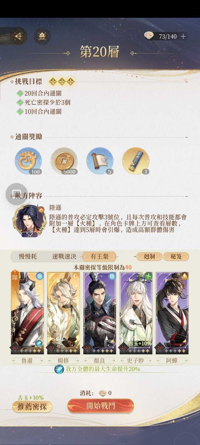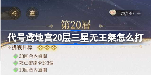 代号鸢中没有王粲的玩家很难三星通关地宫关卡,很多小伙伴都在问代号鸢地宫20层三星无王粲怎么打,今天小编带来代号鸢地宫20层三星无王粲通关攻略,一起看吧。