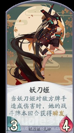她自身基础能力和其卡牌,决定了她可以在一回合打出多次攻击,成吨伤害会让对手苦不堪言。妖刀姬一般就是用来作为队伍的核心输出,妖刀姬的卡牌多数是战斗型卡牌,这正是她强力输出的保证,所以一定要带足战斗卡牌。