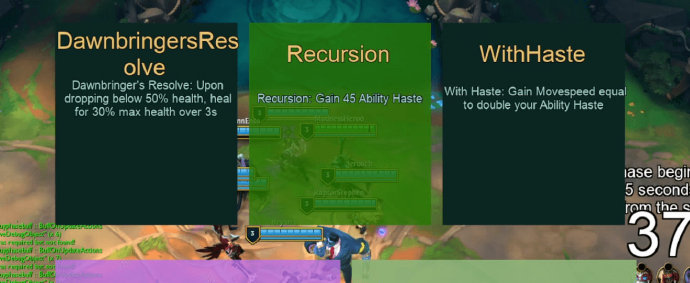 2v2v2v2游戏模式:四支二人队伍,各自挑选英雄,然后与其他队伍两两对决,经历数轮比拼。在对局中,英雄的强度会逐渐增加,在各轮之间获得装备、等级和一种叫英雄强化的特殊能力。失败一定轮数后,队伍就会被淘汰,这样你就可以立刻重新开始排队了。如果你觉得有些耳熟,可能是因为玩过《云顶之弈》的双人作战模式,我们的灵感正是来源于此……只是进行了《英雄联盟》的改装。