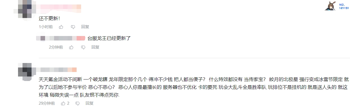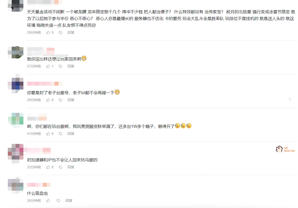 在英雄联盟台服更换运营之后,大量腾讯直营服玩家涌入台服,后续造成台服服务器过载以及游戏队列排队过长等,今日英雄联盟台服运营脸书宣布,将锁IP,随后玩家在得知消息之后前往英雄联盟官方B站帐号评论区表达不满。