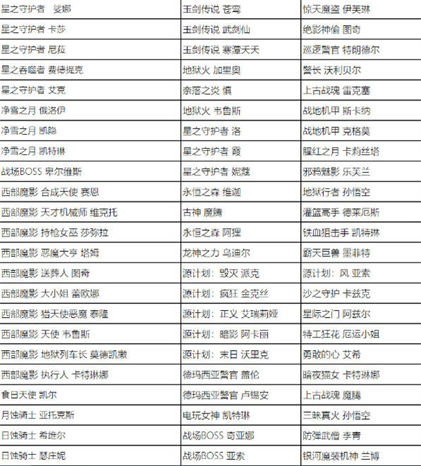 3、如果不知道自己想要的皮肤在不在里面的可以查看下面的表格即可知道你的皮肤在不在了;