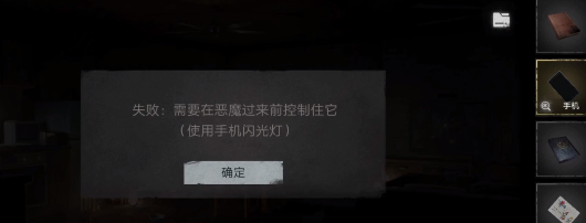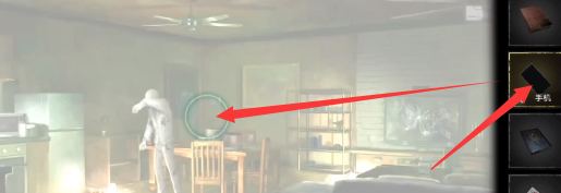 1、等到约翰靠近我们的时候,先去点击手机道具,然后点击屏幕就能够开启闪光灯