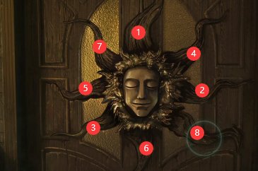 6、卡洛琳线,查看恶魔雕像之后,根据数字在李维特线上调整锁链和翅膀