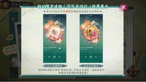 以上就是阴阳师网易云音乐联动茨茨音游记活动玩法介绍的全部内容了,参与活动可得网易云音乐联动播放器皮肤,活动有时间限制,各位小伙伴前往不要错过了。