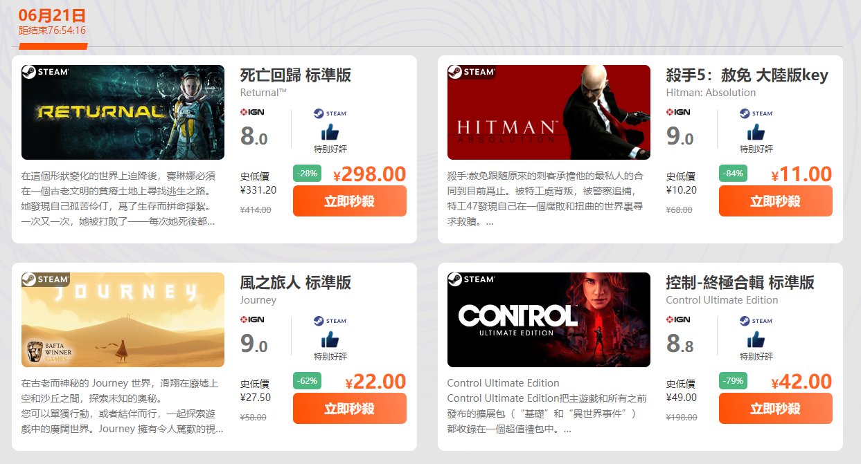 《风之旅人》闪促价:22元;steam史低:27.5元