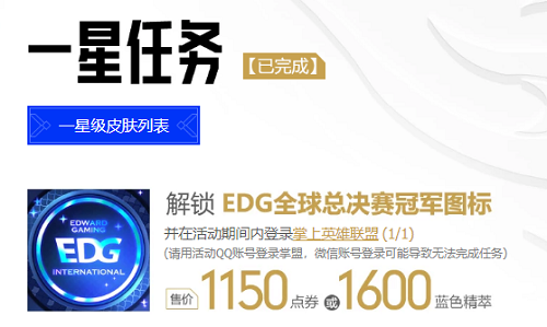 任务一在商城购买EDG全球总决赛冠军图标就行了,在商城的召唤师图标里可以找到