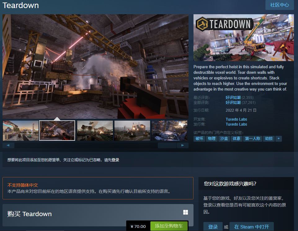 teardown配置,teardown是一款暴力解压拆解游戏,游戏拥有真实物理引擎,在这个模拟世界中,玩家可以用车辆或炸药拆除墙壁,可以发挥各种创意利用环境物体,感兴趣的小伙伴一起拉看看teardown配置要求吧。