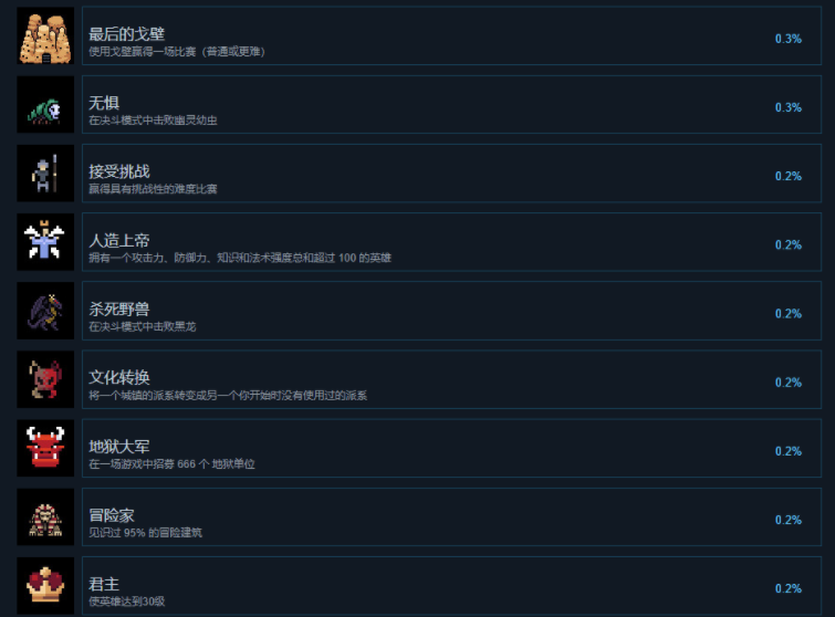 英雄之时成就有什么?英雄之时是一款休闲类型的像素策略类型的游戏,在游戏里面玩家可以通过不同的方法来进行成就奖杯的获取,那么在英雄之时里面有哪些成就奖杯,下面就让我们来看看英雄之时成就奖杯一览。