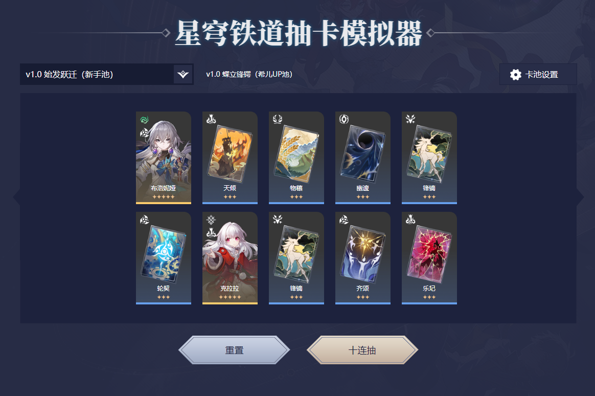 模拟抽卡只是娱乐,与游戏中的实际抽卡没有任何关系。