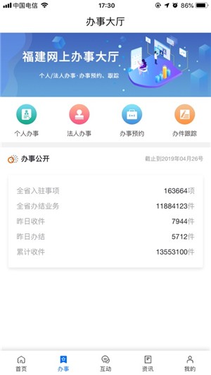 福建实现政务服务统一接入和导航,推进跨区域、跨层级、跨部门政务服务“一号申请、一号登录、一号网”,解决群众与企业之间跑腿的问题