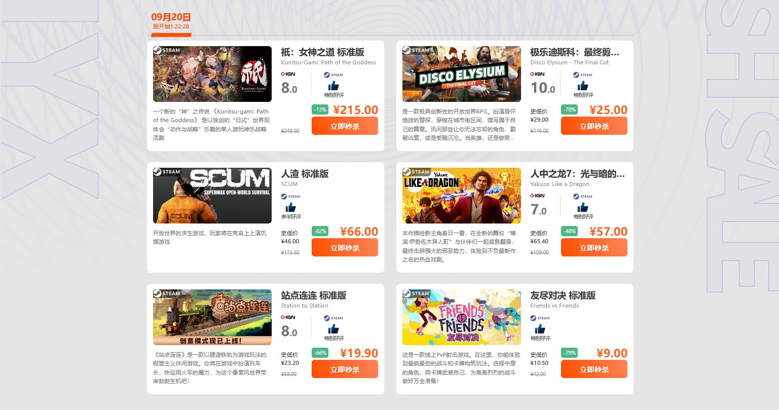 《祇:女神之道》闪促价:215元;Steam未打过折