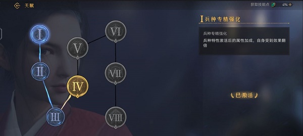 天赋分为8阶,一阶解锁兵种专精,二阶解锁第二个技能位置,三阶解锁属性值提升,四阶解锁战斗风格,五六七八解锁属性技能提升。