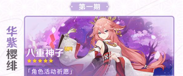 2.5版本第一期的角色up池中的五星角色为八重神子(雷属性),基础属性高攻击力白值,突破加暴击,速切C还可后台挂雷,不论是圣遗物还是武器的选择都相较而言更自由。