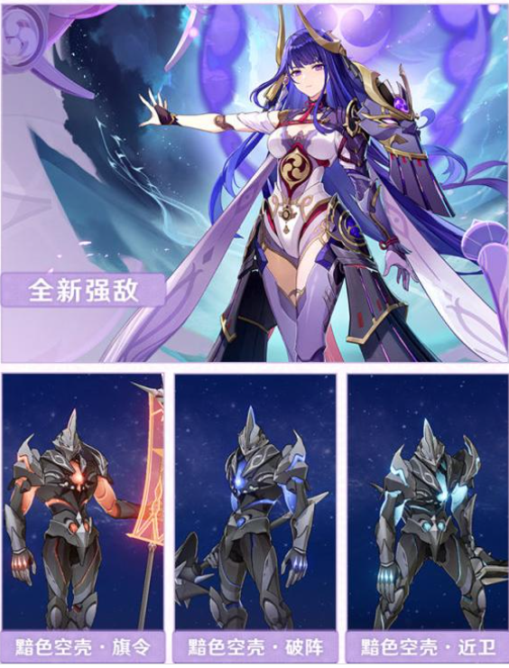新野怪黯色空壳,会吸收玩家的护盾变成自己的护盾,算是非常克制护盾角色了,但如果玩家不使用护盾角色打起来相较而言要简单很多。