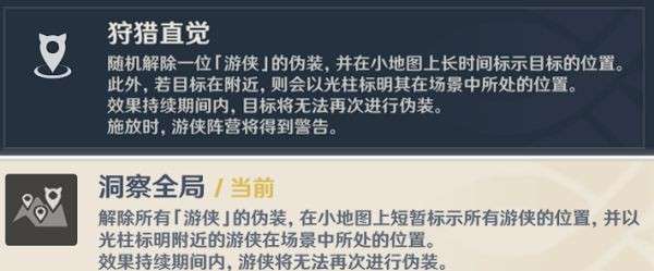 感应光环(探知附近存在游侠则会提示)和神秘感应(短暂标志所有游侠方位)