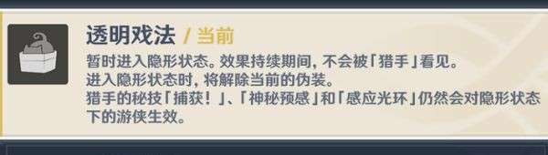 将获得捕获技能(元素战技),可以解除游侠伪装并捕获