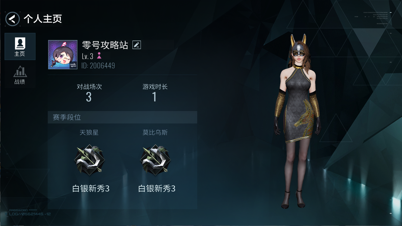 探员可以在个人主页中查看自己的UID,对战场次,游戏时长与赛季段位。还可以通过左侧菜单查看自己的游戏战绩。