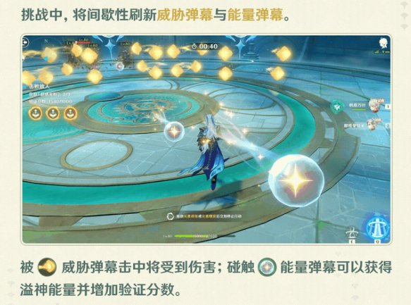 2、挑战中将会间歇性刷新威胁弹幕与能量弹幕。
